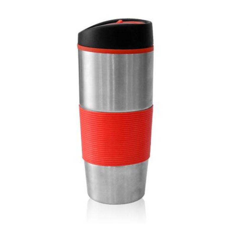 כוס טרמית מעוצבת מנירוסטה עם חבק סיליקון-באישור מכון התקנים – 450 מ"ל
