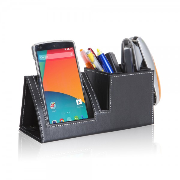 Skip to contentמעמד שולחני דמוי עור עם כוס לעטים